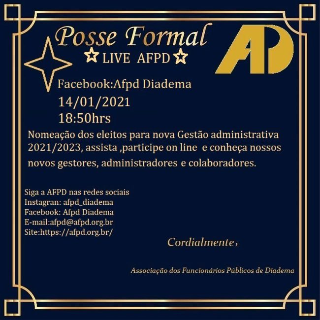 No dia 10 de dezembro, conforme edital publicado, ocorreu a Eleição para o Conselho Gestor da Associação dos Funcionários Públicos de Diadema. A eleição foi virtual, visando o momento de pandemia que estamos vivendo, mas também tivemos dois totens disponíveis em locais deliberado pela Comissão Eleitoral, sendo na Associação e na Secretaria de Obras. O…
